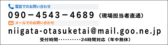 お悩みの方が「笑顔」を取り戻せるよう、親身になって対応させて頂きます。料金の安さと場数をこなしてきたパワフル便利屋新潟お助け隊グループへお気軽にご相談下さい!